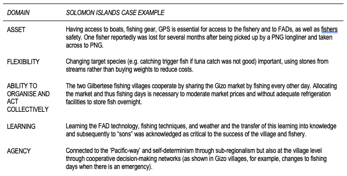 SES Analysis using matrix to explore vulnerability (incl. adaptive capacity) and resilience of Solomon Island’s tuna fishery SES with a focus on collaboration, cooperation, and coordination